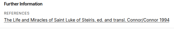 For the scientific use of the presentation site, it would be beneficial to distinguish between the following categories: Edition, Bibliography and also External reference.